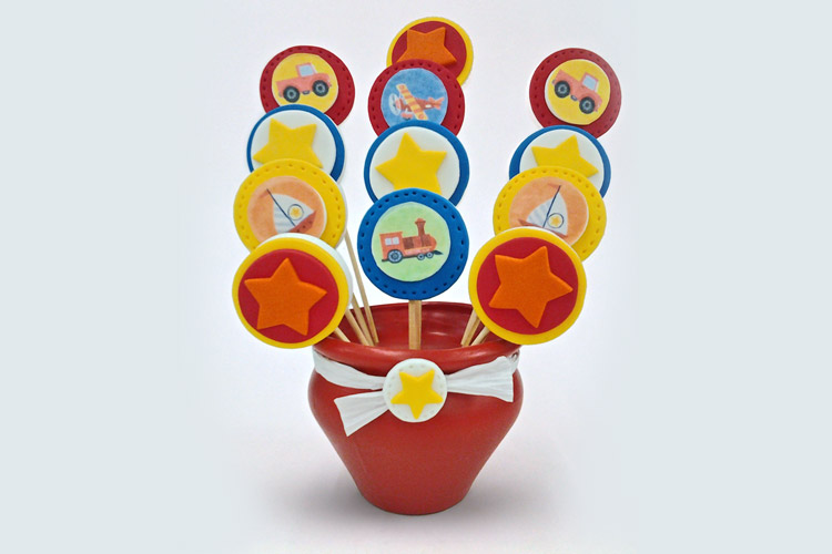 Algo muy buscado para los cumpleaños infantiles son las macetas con chupetines.